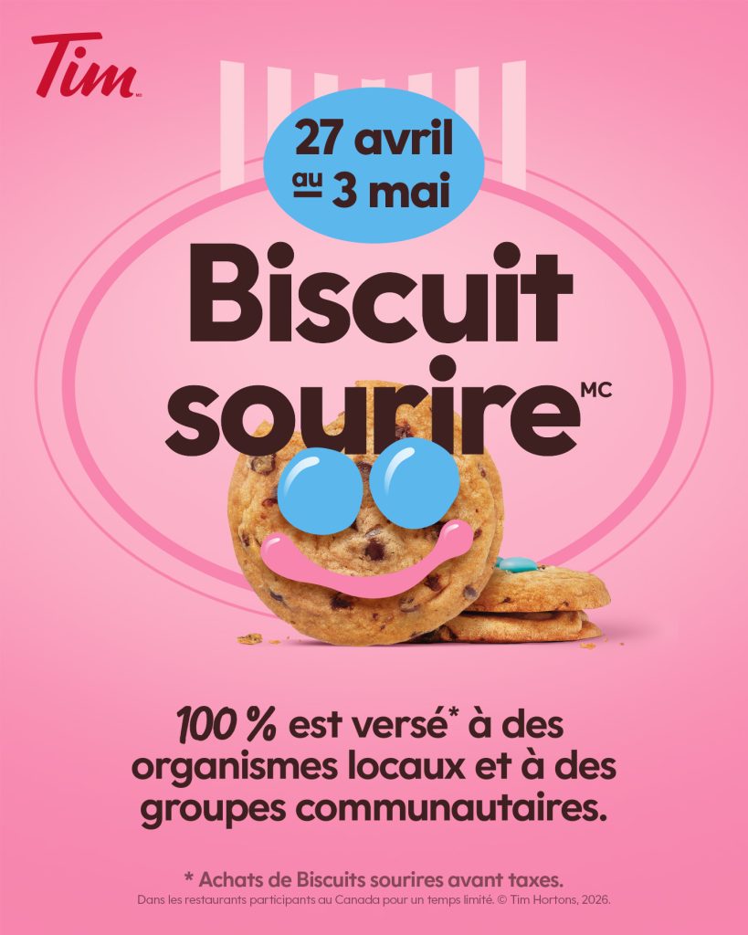 Devenir bénévole et participer à la campagne > Nouveau bénévole pour la campagne Biscuit sourire Tim Hortons (27 avril au 3 mai)